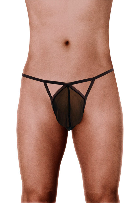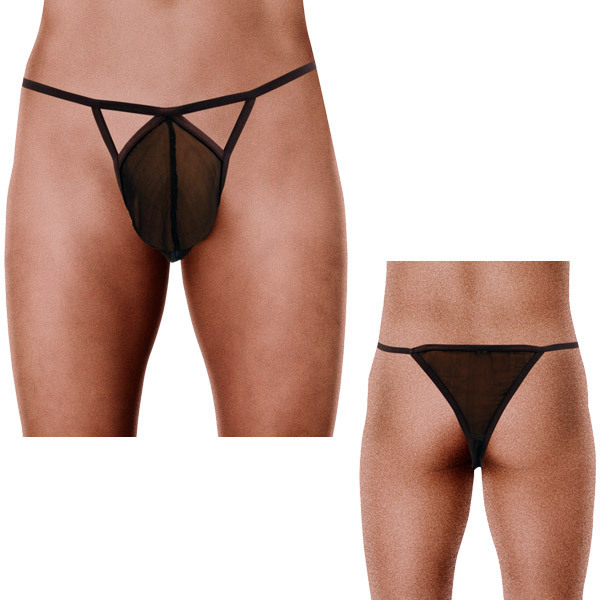 <EROX>透ける柄入りでセクシーに!ブラックのメンズTバックショーツ。中身が透けて丸見えになった柄入りシースルーが超エッチ!バックスタイルはTバック仕様で大胆な男らしさを表現した、デザイン性抜群の男性用下着です。