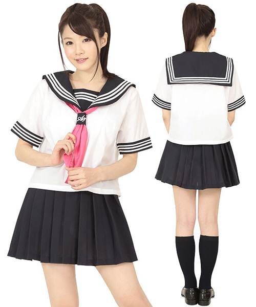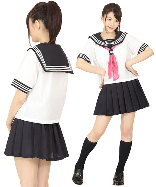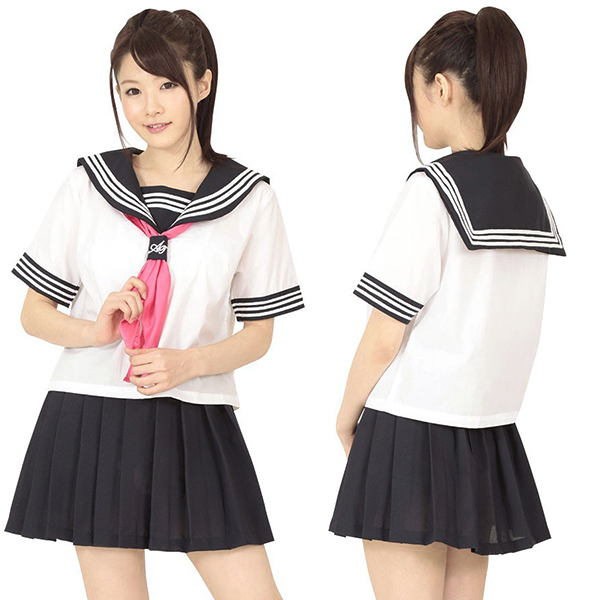 本物そっくりのデザインが魅力!コスプレ衣装の定番セーラー服。ネイビーカラーのミニ丈プリーツスカートや、オーソドックスな3本ラインが超リアル!赤いスカーフに半袖ブラウスが涼しげな、セーラー服コスチュームです。※Lサイズ(b18122)あります