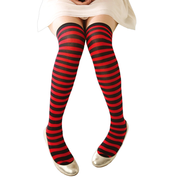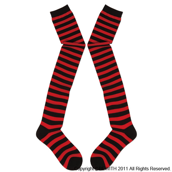 コスプレで大活躍間違いなし!赤×黒ボーダーのニーハイソックス。いつものコスチュームにプラスするだけで、ちょっぴりハードなコーディネートに変身!コスプレ衣装はもちろん、普段使いも出来ちゃう優れものアイテムです。