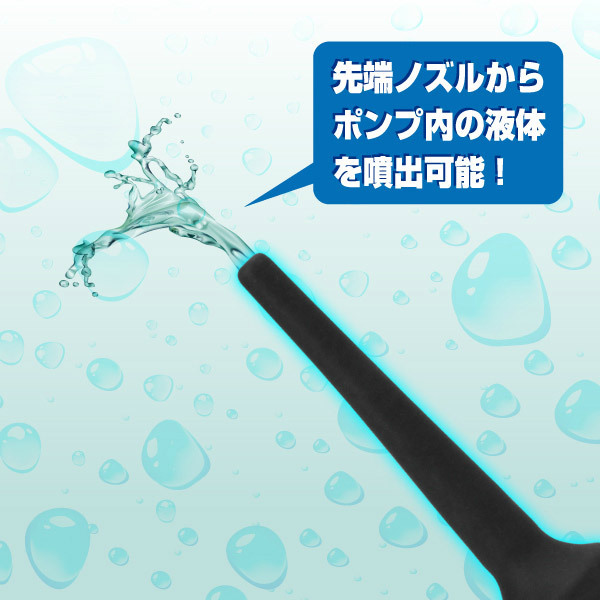 ポンプの中にローションを注入すれば、アナニーに最適なアナルディルドに!また、液体を注入すればプレイ前後の洗浄器具としても使える優れもの。