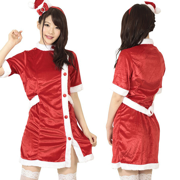 もしもサンタクロースが看護師になったら…?ナース風デザインのクリスマスコスプレが登場しました。太めのモコモコパイピングで可愛らしく仕上げたボタンワンピースと、帽子付きカチューシャのセット。定番人気のナース服デザインに、サンタテイストを加えた最強コスチュームです。※ストッキングは付属しておりません。