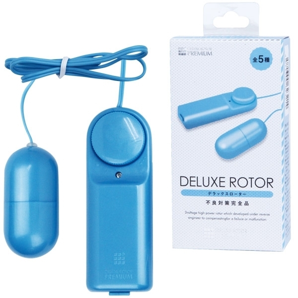 大人気シングルローターがニューモデルで新登場!大型ローターを搭載した「NEWデラックスロータープレミアム」ブルー。振動部をΦ2.6cmからΦ3cmにした事で、よりパワフルな振動と刺激を実現しました。振動調節はシンプルな無段階のダイヤル式!一般的なローターに比べ、丈夫で壊れにくいのも特徴!操作部中央にはLEDのブルーイルミネーションも搭載しています。単三電池×2本付属。