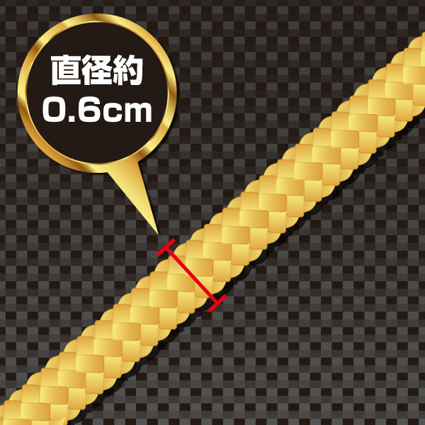 たっぷり全長10m!摩擦に強いソフト素材を使用した高級SMロープに、ゴージャスなゴールドカラーが登場。ソフトな肌触りのビニロン素材で肌を傷める心配もなく、緊縛プレイ初心者さんにもぴったりのSMグッズ。全長は10mあるので、亀甲縛りや達磨縛りもお手の物!ボディを美しく縛り上げる金色のSMロープで、緊縛美をお楽しみ下さい。