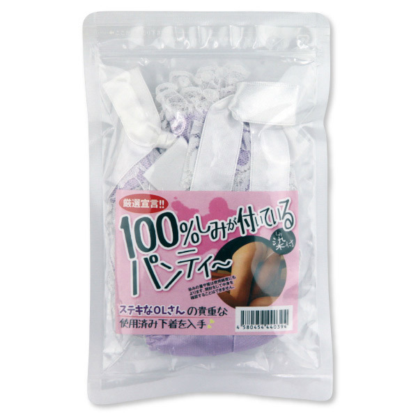 ●鮮度バツグン?完全密封ジップ袋●オフィスレディの使用済み加工●イケない部分に秘密のシミつき●女性用ショーツ一枚入り。