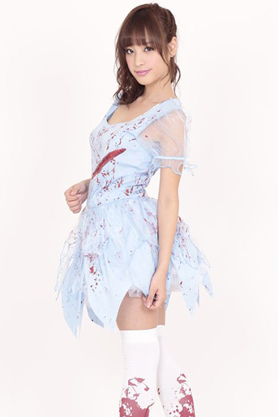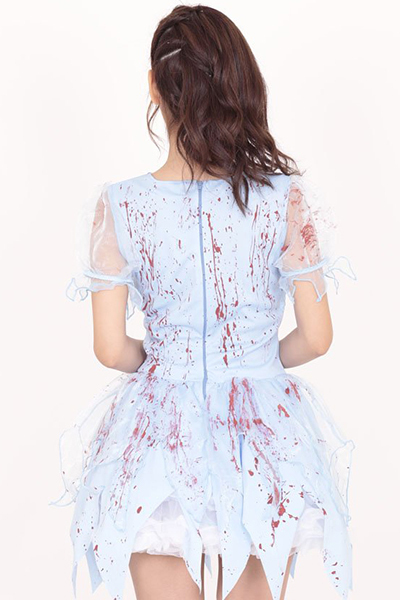 可愛いプリンセスがこわ〜いゾンビに変貌!ハロウィンやイベントが盛り上がるゾンビ風ワンピース。●キュートな水色カラー●スカート部分はオシャレなカッティングデザイン●血しぶきが飛び散ったようなデザインが恐怖感を与えます。画像のモデルさんみたいにメイクもバッチリ決めてみんなを驚かせちゃいましょう。※こちらの商品は受注発注商品の為、ご注文から発送まで2〜3営業日掛かる場合が御座います。