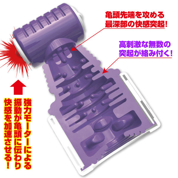 亀頭に被せてスイッチON!ハイパワーな振動が性感ポイントをダイレクトに刺激する電動オナホール。●ソフトシリコン素材●大きさ・形が違う無数の突起●多彩な12種類の振動パターン●赤いボタンスイッチで電源ON/OFF●ボタン電池(LR44)×3個使用。亀頭オナニーが好きな方はもちろん、亀頭で感じるようになりたい方にもオススメの電動オナホールです。
