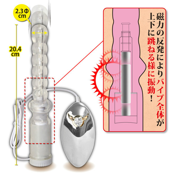 内部の磁石の反発によりバイブ全体が跳ねるように振動し、アナルの最奥まで刺激!一度味わうとクセになる極上アナルバイブです。
