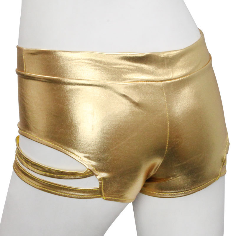 サイドのカット部から覗く素肌がセクシーなメタリックホットパンツ。●光沢感抜群!高級感のあるメタリックゴールド●サイドはオシャレ且つセクシーなカッティングデザイン●Mサイズ。ダンスコスチュームと相性バッチリ!思わず踊りたくなるセクシーコスチュームです。