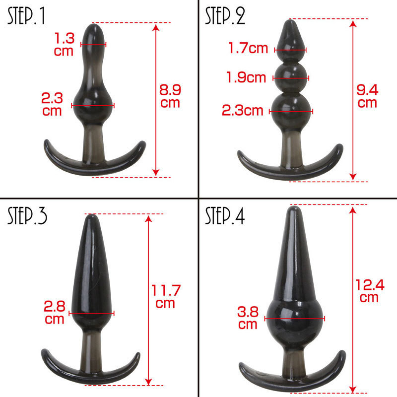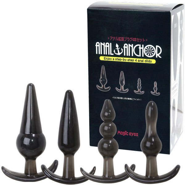 ステップアップ可能な4サイズが集結!イカリ型フォルムの拡張アナルプラグ4本セット。