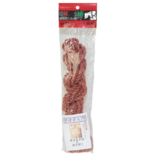 高級黄麻素材を使用し、丁寧になめし処理&朱染めされた紅椿シリーズのSMロープ!後手縛りと前面亀甲縛りのミニガイドブック付きなので、本格的な緊縛を今から覚えたいという方にも最適です。