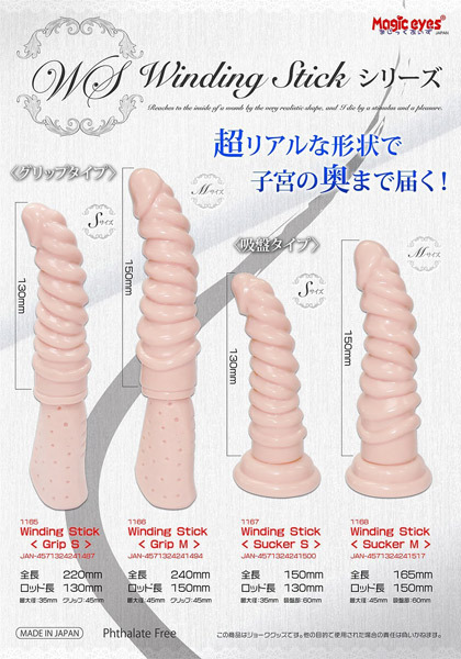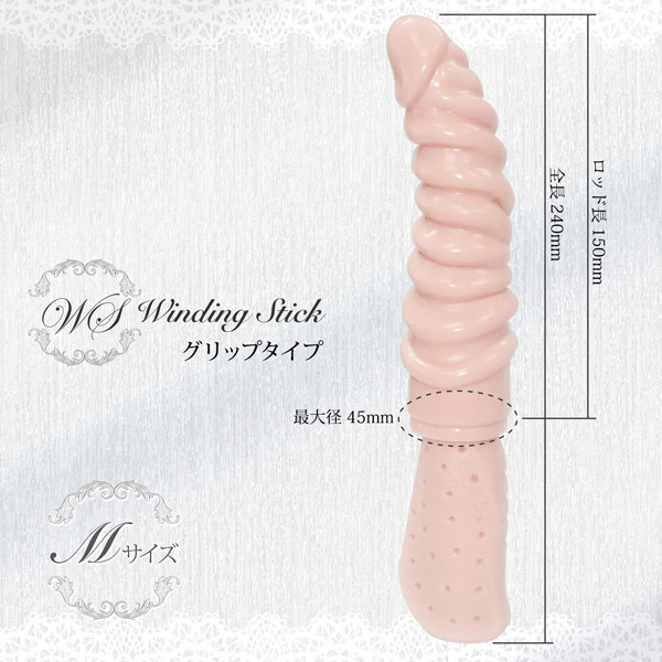●ボディがうねった衝撃的デザイン●たっぷり肉ヒダのような螺旋形状●先端部分は亀頭風でスムーズにin●挿入長15cmで奥までしっかり届く●中〜上級者向け設計の最大径45mm●グリップ付きで攻めプレイにも◎●安心素材で作られた純日本製。