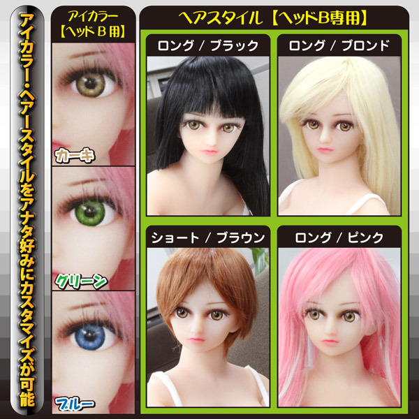 ※必ず画像でアイカラー3種(カーキ・グリーン・ブルー)のなかから、ヘアースタイル4種(ロング/ブラック・ロング/ブロンド・ショート/ブラウン・ロング/ピンク)のなかから、それぞれのご希望を選び注文時の備考欄にご記入ください。