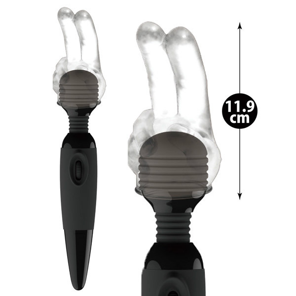 ●ダブルフィンガー(クリア)ver●柔軟かつ耐久性のあるエラストマー素材を使用●ヘッド径4.5〜5.2cmの電マに使用OK。