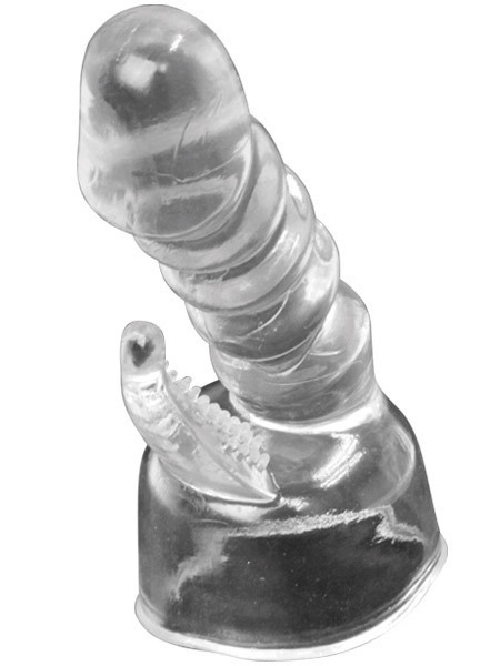 ●ヘッド直径4.5〜5.2cmの電マにセット●清潔感漂うクリアカラータイプ●先端が張り出したバイブ風ボディ●波打つ凹凸竿で挿入にアクセント●クリトリス刺激のブラシ突起付き●同型の黒色タイプ(b24917)も。