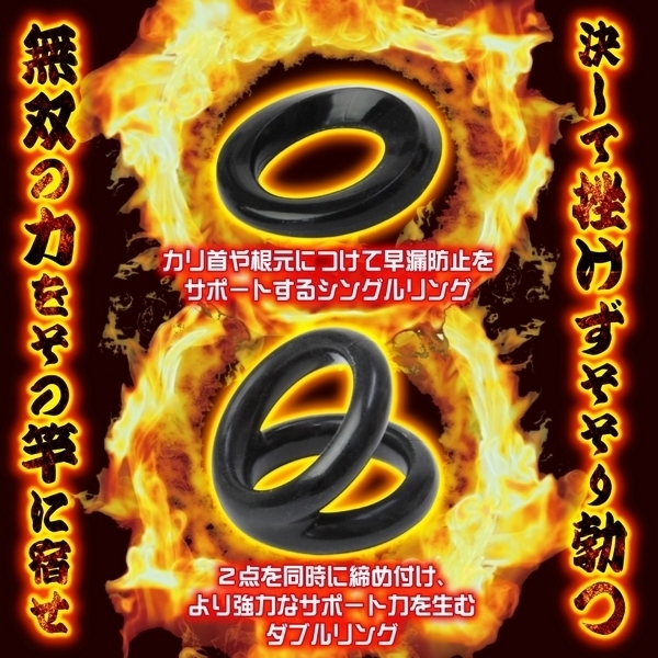 2種のリングを同時に装着すれば、まさに一騎当千の戦闘力で無双!早漏防止や勃起力UPをサポートする男性用補助グッズです。