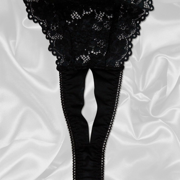 トップページ > ランジェリー > オープン ブラ・ショーツ(穴あき) > トリコット生地フラワーレース脇紐オープンTバック ブラック