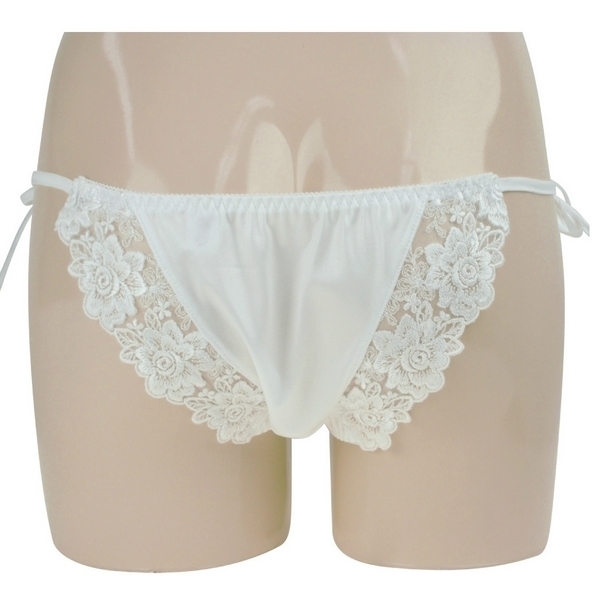 光沢×フラワーレースでエレガントにセクシーアピール♪オープンクロッチのレディースショーツ。