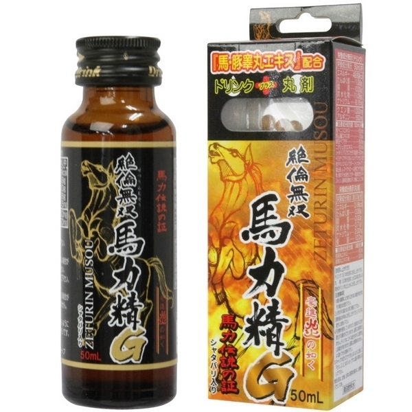 ドリンクと錠剤、Wの効果で馬並みの元気が手に入る!?男女共用のドリンクとサプリです。成分は馬ペニスエキス、馬心臓エキス末、卵白ペプチド、ニクジュヨウエキス、シャダバリ、イミダペプチド、トンカットアリ抽出液、レスベラトロール含有ブドウ抽出液、蜂の子水溶性パウダー、無臭ニンニク末の10種類。1箱が1日分となります。