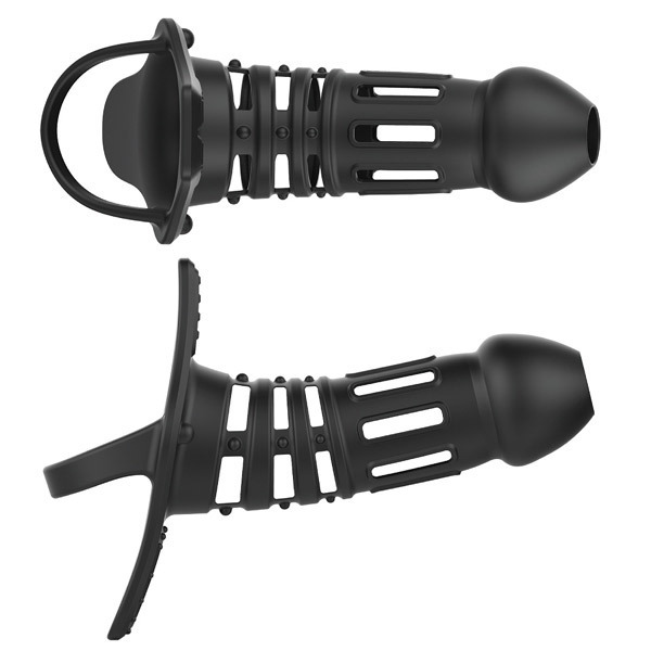 鎧をイメージした重厚感漂う貞操帯のようなフォルムはまさに「アーマー」という表現がピッタリなペニスサックですが、肌を露出するサイドデザインなので挿入感を損なうことなくプレイ可能。