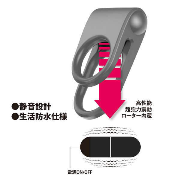 高性能なパワフルローターを内蔵したシリコン製のダブルリング仕上げ!小リングで局部の根底から締め上げた怒張ペニスと強力振動でパートナーを責め立てながら、玉を締め付ける大リングで持久力もUP!内蔵ローターは着脱可能、静音設計&生活防水仕様で使用感もスタイリッシュな電動コックリングです。