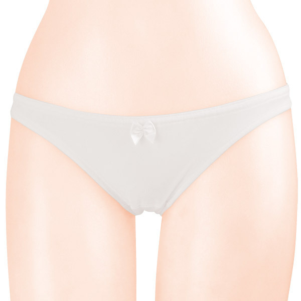 インゴム仕様でボディにフィット!セクシー&キュートなレディースフルバックショーツ。●シンプルで清楚なホワイトカラー●透け感がセクシーなトリコット生地●脚ぐりに上品なレース飾りをON●フロント中央にミニリボン付き●お尻すっぽりのフルバック●腰と脚回りはインゴム仕立て●日本製・Mサイズ。シンプルでもしっかりセクシー!インゴムタイプなのでフィット感もあり、履き心地も抜群なランジェリーです。