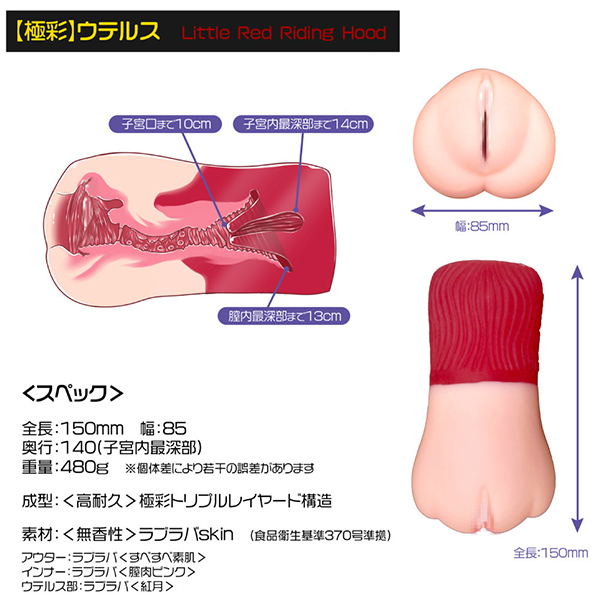 ●マジックアイズの極彩シリーズ●インパクト抜群のツートンボディ●素肌層、膣層、子宮の3種素材●すべすべ素肌のアウター部●膣肉ピンク色のインナー部●真っ赤に充血したウテルス部●挿入口付近に環状膜を配置●優しく包み込む柔らかな質感●高弾力な子宮口がお出迎え。
