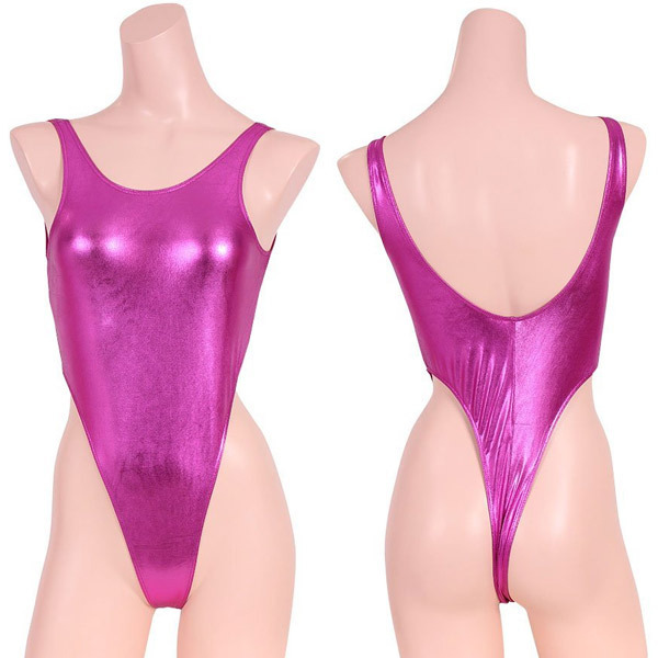 セクシー過ぎる究極のハイレグデザイン!艶やかなメタリック生地のレオタードコスチューム「ハイレグTバックレオタード メタリックローズ」。