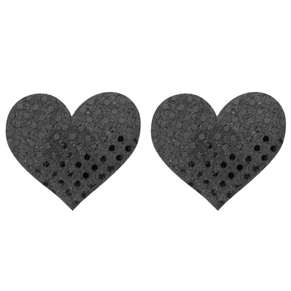 ピタッと貼るだけの簡単仕様♪バストトップに貼るだけで、セクシーな大人の雰囲気を醸し出す下着感覚のニップルジュエリー「ニップルシール ドットハート 黒」。
