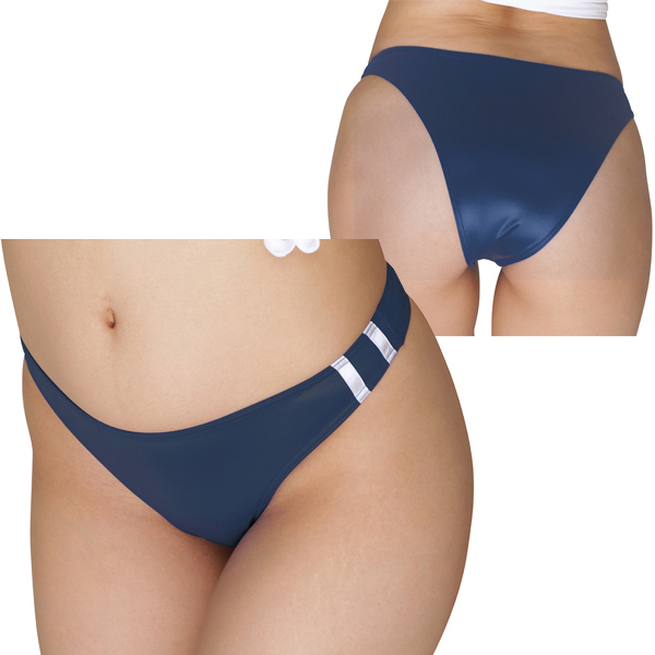 サイドの縦に入った2本のホワイトラインがブルマ感を演出するも、ネイビーカラーによりどこかノスタルジックさを感じさせてくれるセクシーブルマです♪バックスタイルはヒップラインを強調するハーフバックデザインとなっていて、テカテカとした光沢感がヒップラインの魅力を抜群に際立たせてくれます。