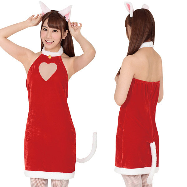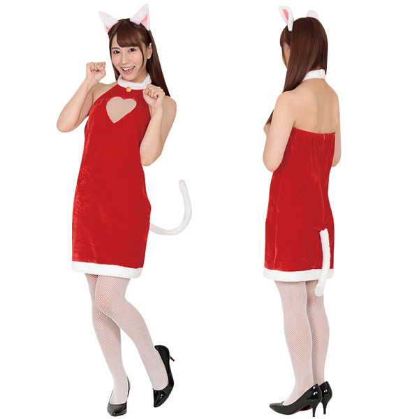 クリスマス、サンタコスチュームの激安通販サイトはコチラ!聖なる夜はふわふわ尻尾付きの可愛いクリスマスコスプレで盛り上げるにゃん♪赤×白のノースリーブワンピースと猫耳カチューシャの2点セット。胸元をハート型にくり抜いた可愛いクリスマス仮装で男性を悩殺!キャバ嬢さんのイベント用衣装としては勿論、ご自宅でのクリスマスパーティにぜひどうぞ♪
