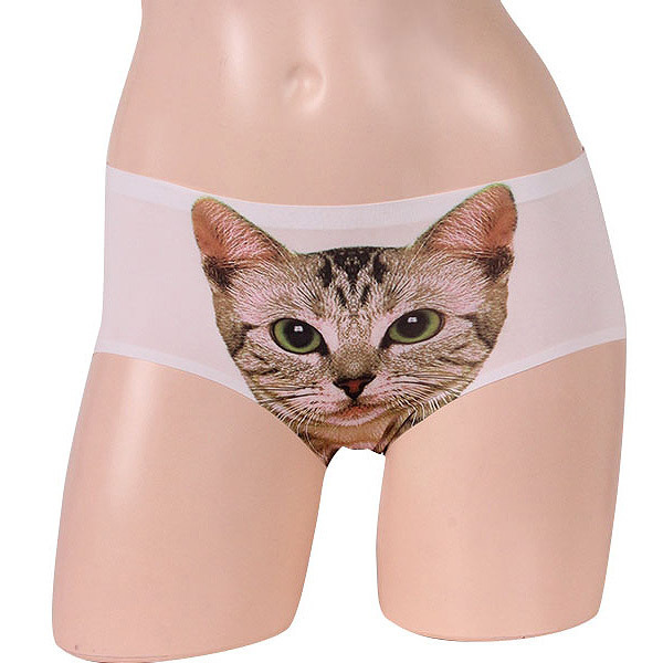 とことんハジけたもん勝ち!人気爆発中の猫プリント入りホワイトショーツ。股の間から猫の顔が飛び出すぞー。※こちらの商品は受注発注商品の為、ご注文から発送までに3、4営業日掛かる場合が御座います。