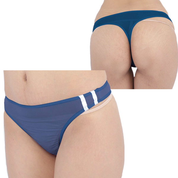 普段着でもブルマを取り入れたい方は是非どうぞ!2本の白ラインが入ったネイビーカラーのブルマ風Tバック(日本製)。素肌が透けて見えるほどの極薄生地で懐かしい体操着をセクシーに仕上げたTバック仕様のブルマ♪二人の夜を盛り上げる一枚に。