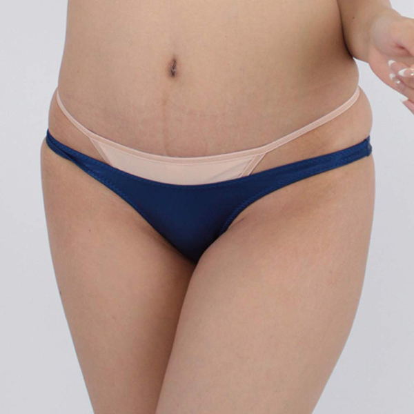 艶やかな光沢が美しいストレッチ生地の日本製ハーフバック(紺)。飾りの無いシンプルなデザインと大人しめなネイビーカラーが日常使いに最適!伸縮性のあるストレッチ生地を使用しているため穿き心地は抜群です♪