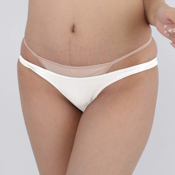 艶やかな光沢が身体のラインを描き出すストレッチ生地の日本製ハーフバック(白)。日常使いに最適な飾り気のないシンブルデザイン!伸縮性があり穿き心地バツグンです♪