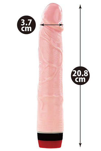 適度な太さと長さで初心者から上級者まで幅広く楽しめる振動機能付ストレートバイブ(電池式)。強弱調整はダイヤル式なので直感的な操作が可能!質感よし、ハリのある高品質なエラストマー素材を使用した肉厚な電池式バイブです。単3電池×2使用