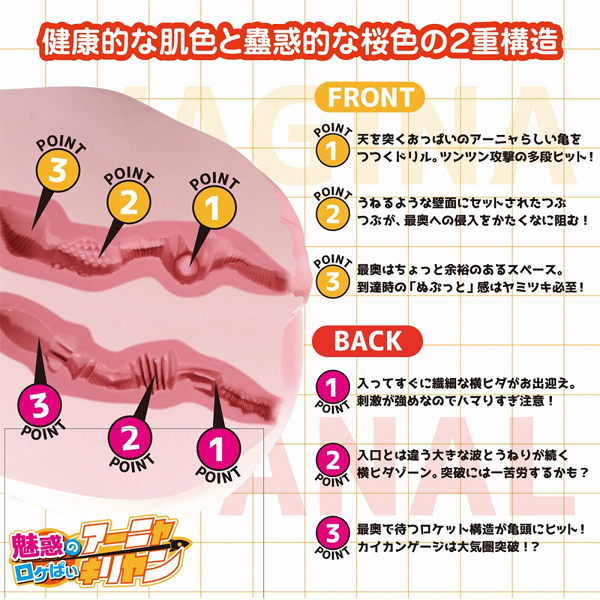 アナルとヴァギナは、粘膜色の2重構造で、層がぶ厚く、耐久性はバッチリ!6.5kgというほど良い重量感で、リアルボディがさらに身近に、楽しみやすくなりました。