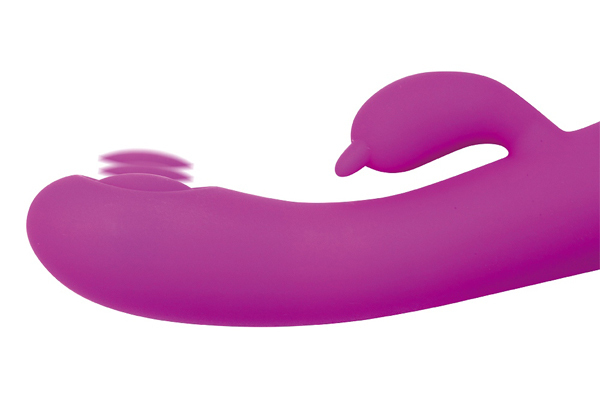 敏感ポイントを激しくノックするように刺激するUSB充電式バイブ(ピンク)。