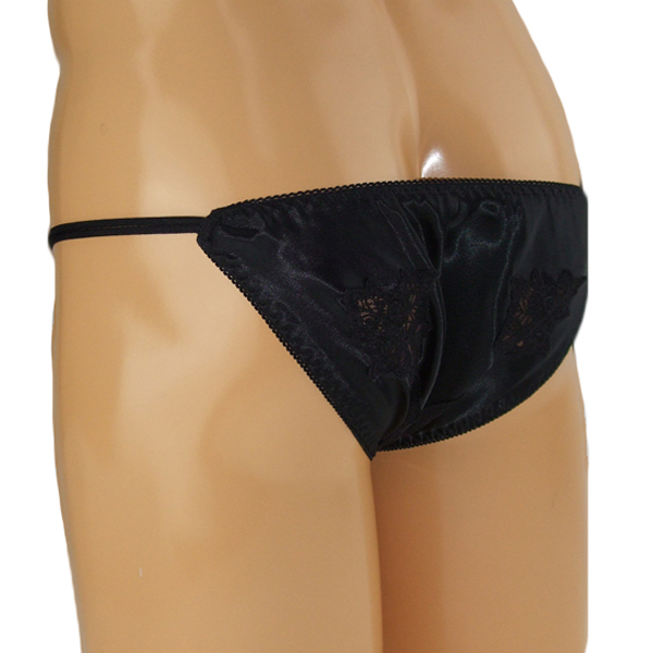 女装下着としても最適!高級感のある上品な光沢と花柄のレース刺繍が美しいメンズ用フルバック(黒)。レースの隙間から見える素肌にドキッとする一枚♪セクシーに魅せたい夜にぜひどうぞ!