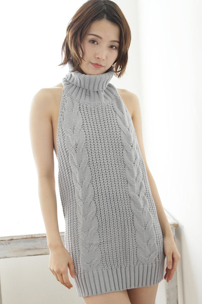 SNSで話題の童貞を悩殺できちゃうエロすぎニットセーター(グレー)が登場♪お尻をすっぽり覆う長めのニットワンピの胸横から背中まで、大胆に露出させた大人の色気を感じさせるケーブル編みのセクシーニット!ここぞという時に着ればパートナーもドキッとすること間違いなしです♪