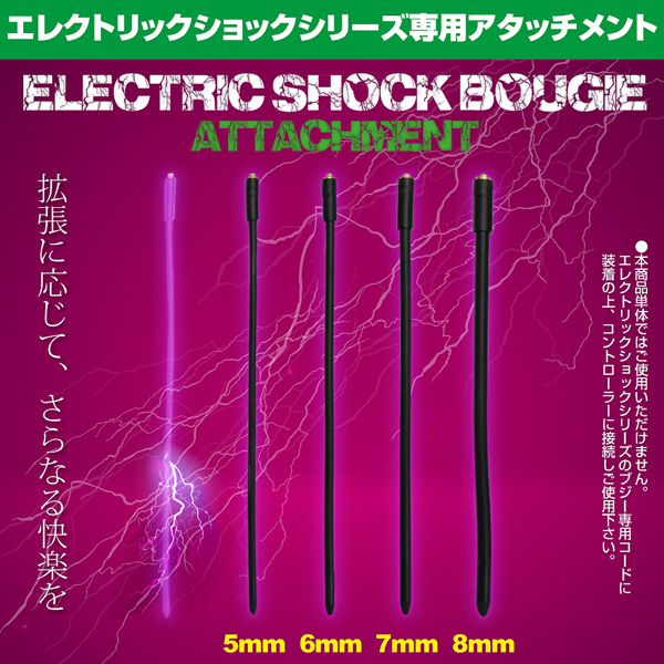 拡張に応じたサイズで普通を超えた刺激的な快楽を!痺れるような電流責めを味わえるエレクトリックショックシリーズ専用ブジーアタッチメント(5mm)。別売りの「エレクトリックショックコックループ(b29062)」に接続することで手軽に電撃を味わえる!※本品単品での使用は不可