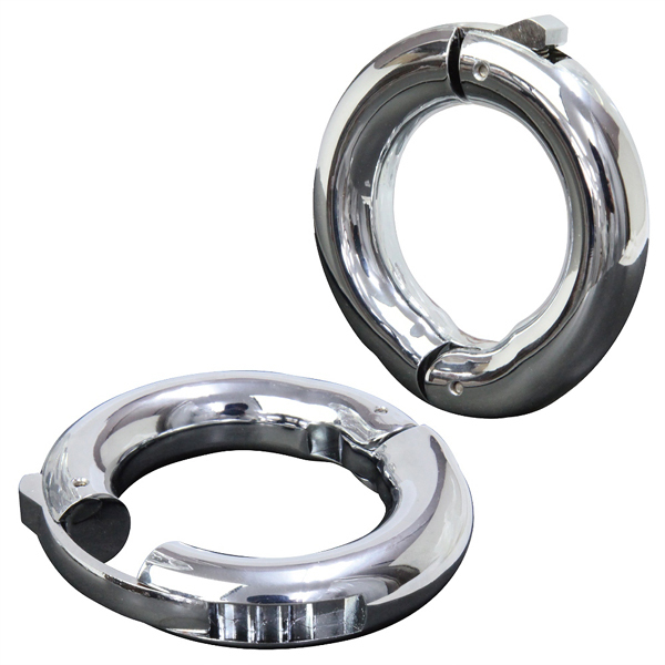 ワンタッチで着け外し簡単!根本から締め付け射精感をアップするメタル製のコックリング。