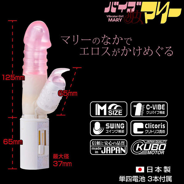 バイブ少女マリーはワイドな面でクリちゃんを責めるスイングバイブです。