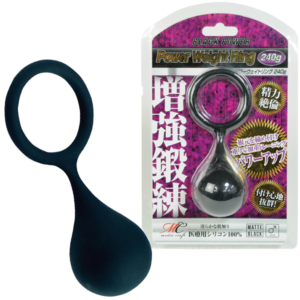己を磨いて精力絶倫を目指せ!ペニス増強グッズ「パワーウェイトリング (240g)」は、医療用シリコン100%の重り式ペニス鍛錬サポートアイテムとなっております♪着け方は簡単!リングをペニスに通して根元にかけるだけ。滑らかな肌触りなので着け心地も抜群です♪勃起力や持続力が無くてなんとかしたいとお考えならば、ぜひ一度お試しください!