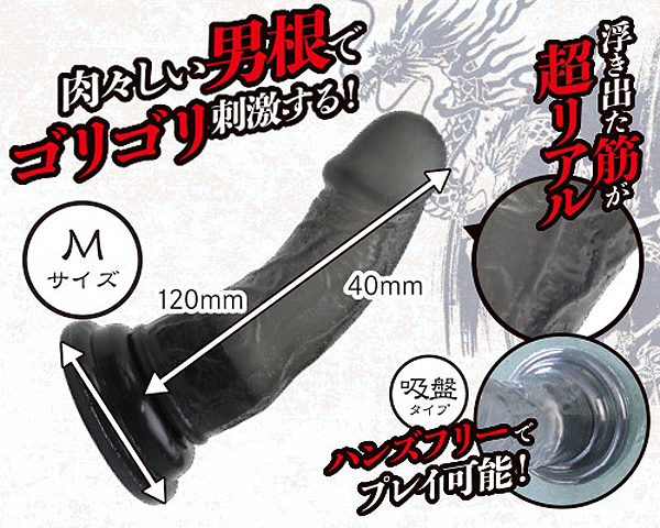 肉々しくも極太の男根が、悶絶刺激するほどの刺激で責め立てる日本製のディルド!挿入部は全長約12cm、太さ最大4cm。筋が浮き出た形がなんとも性欲をかきたてます♪吸盤タイプだから、床や壁に貼り付けて様々な体勢で使えるのが嬉しい!自室に限らずお風呂場や外出先でも、場所を問わず使用していただけます。