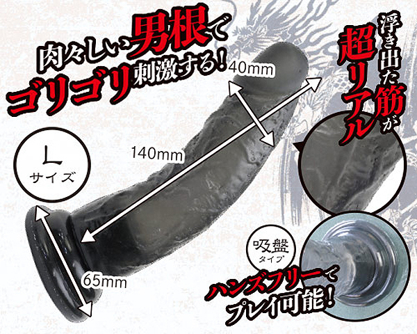 男を感じさせる極太ディルド!安心して使える日本製で、本体の挿入部はおよそ14cm×4cmのLサイズ。筋が浮き立っているボディは性欲を掻き立ててくれます♪吸盤タイプで床や壁に貼り付けて使えば、ハンズフリーでのプレイが可能。肉々しい男根でナカをゴリゴリと刺激されれば、あまりの快感に悶絶必至です!