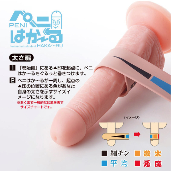 貴方のアソコは何センチ?巨根、ややデカなど目で見て分かりやすい男性自身のサイズ計測に特化したジョークグッズ。長さ、太さ、気になる数値をお家で手軽に調べられる♪女性へのアプローチなどに◎
