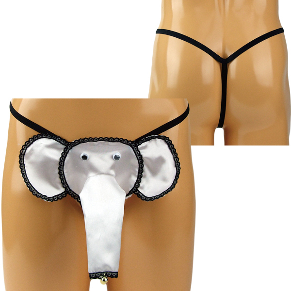 ホワイトカラーの光沢生地で仕上げたユニークなゾウさんGスト。股間を最大限にアピールできるストリング仕様!鼻の先端は鈴がついており、動くたびにリンリンと音を鳴らします。日本製、Mサイズ