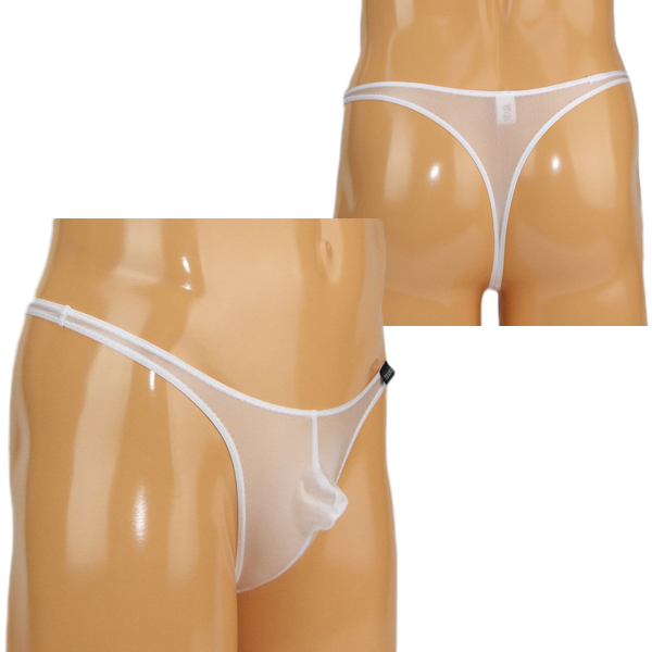 どこから見ても見えちゃう!男の象徴を曝け出す大胆なメンズ用シースルーTバック。下半身にフィットする伸縮性抜群なストレッチ素材を使用!T字デザインの大胆さに胸が高まります♪◎ホワイト、Mサイズ
