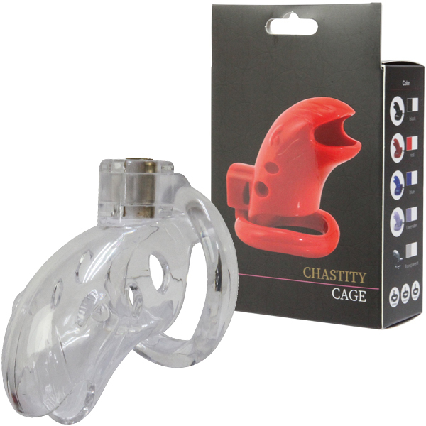 中の様子が見て分かる!透明ケージ&固定リングで勃起を抑制するプラスチック製の男性用鍵付き貞操帯。2つのパーツで簡単装着!先端スリット入りで装着したまま排泄可能な機能性に優れたデザイン♪鍵も上部に設置しているため目立ちにくく邪魔にもなりません。固定リングは内径4.1cm、4.6cm、5.1cmの3サイズで、ケージは全長7cm、幅3.5cm仕様◎クリアカラー