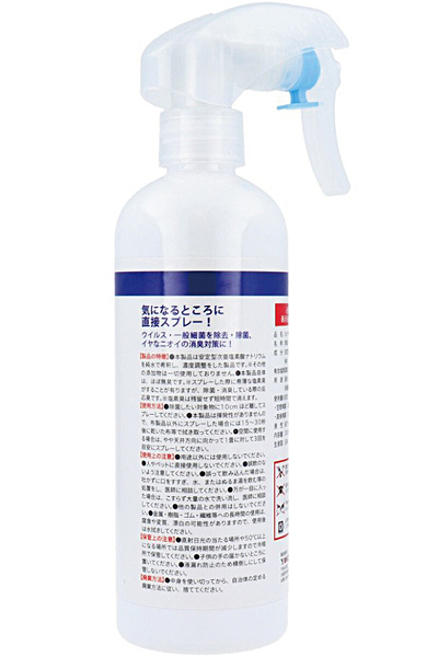 キッチンや玄関など、気になる場所を徹底衛生管理!シュッと一吹きするだけお手軽除菌&消臭♪自宅でも業務用としても使える匂いにくいプロ仕様の除菌スプレー300ml。ウイルスや細菌を綺麗に除去して嫌な臭いを元から断つ!医療や介護の現場などでの予防対策に◎安定型次亜塩素酸ナトリウムを純水で希釈しています。